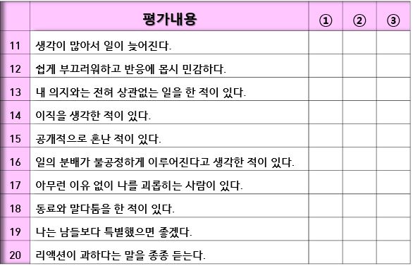 ② 감정 상태 평가: 스트레스는 또한 감정 상태에 영향을 미쳐 불안, 과민성, 우울증 및 압도감과 같은 증상을 유발할 수 있습니다.
