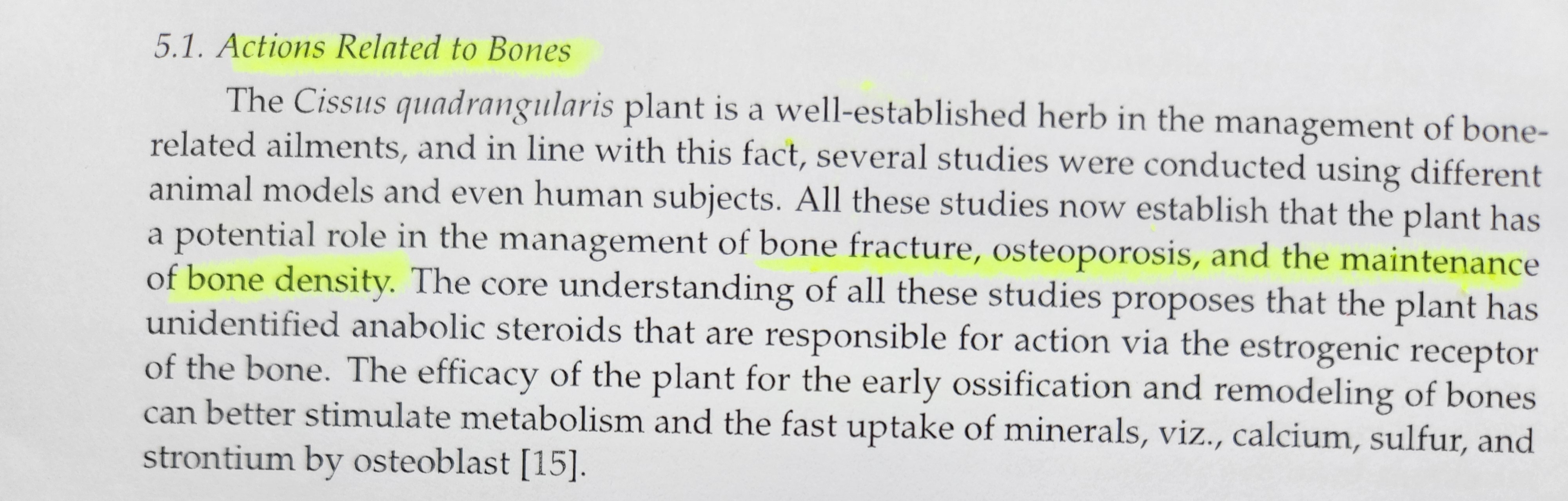 · 골절염, 골다공증 : 시서스는 뼈와 관련된 질병에 도움을 준다고 알려져 있는데 이는 뼈의 에스트로겐 수용체를 통해서 작용합니다. 신진대사를 자극하고 골아세포에 의한 칼슘, 황, 스트론튬과 같은 미네랄의 빠른 흡수를 촉진하는데 도움을 줍니다.