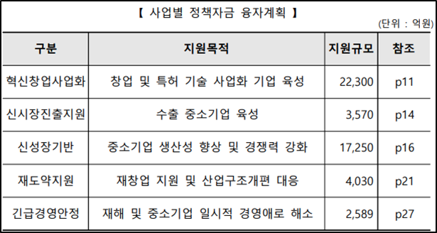 * 고용창출 밋 수출실적 등을 기업평가 지표에 반영하여 우대