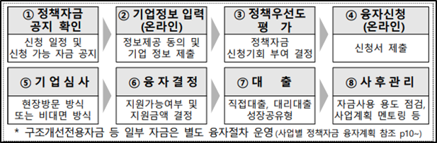 (1) 직접대출 : 중진공이 직접 기업에 정책자금 융자