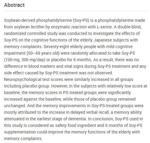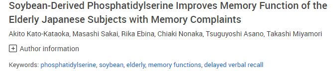논문제목 : 대두 유래 포스파티딜세린, 기억력 장애가 있는 일본 노인들의 기억력 기능 개선 효과